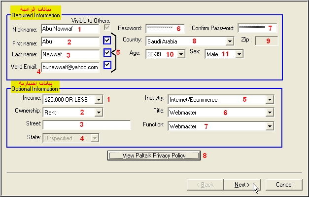 فهذا العنوان يستخدم من قبل خادم البال تالك لإرسال كلمة السر الخاصه