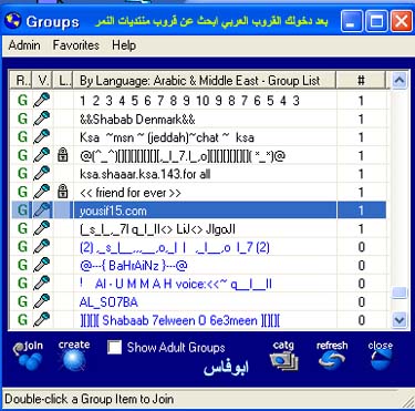 عليه دبل كليك ليفتح لك قائمة بالغرف الموجوده بالقروب العربي |