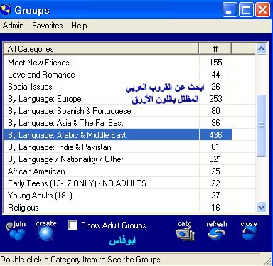 بعد دخولك القروب العربي كل ماعليك ان تبحث عن الغرفة